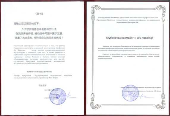 • 吴汉卿教授被聘为俄罗斯伊尔库斯克国立大学医学研究院教授吴汉卿教授被聘为俄罗斯伊尔库斯