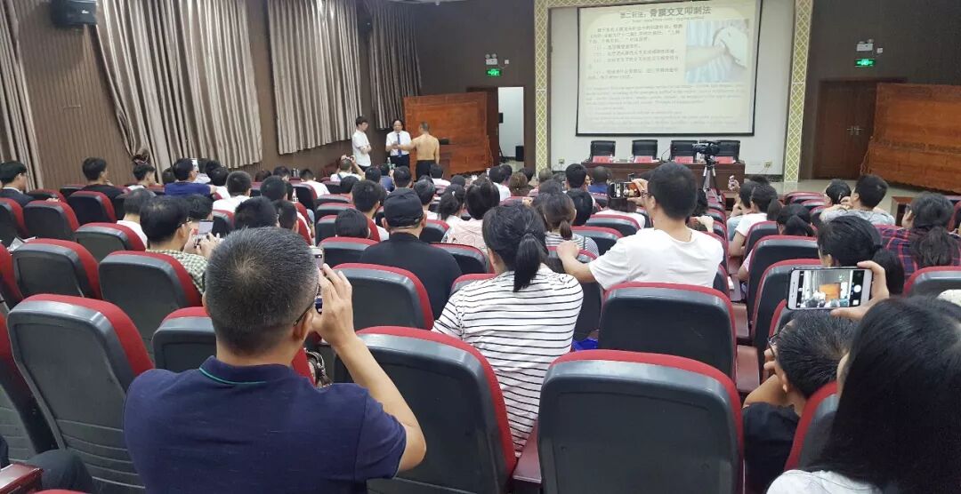 主讲内容五 :水针刀脊柱相关病松解埋线疗法,是吴汉卿教授根据内脏疾病在脊背反射规律及脊柱全息原理等,将脊柱区带划分为九大诊疗区、胸腹部九大对应诊疗区与四肢治疗点,应用水针刀针法,在脊背九大诊疗区、胸腹部对应区筋膜结节点,四肢反射点进行松解筋结、注射与留置磁线,使传统经络现代化、传统腧穴简易化。具有定位精确、操作简便、疗效确切、易于掌握等优点,为脊柱相关病的诊断与治疗提供了新的思路。