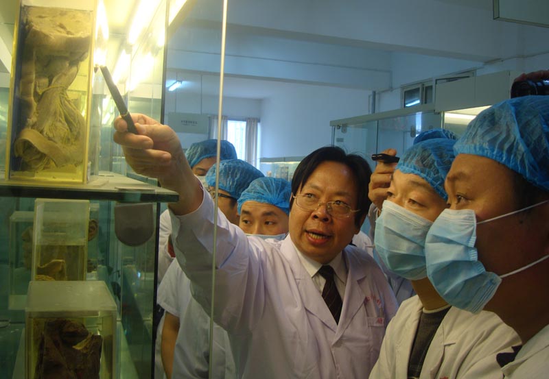 吴汉卿教授为第110届水针刀培训班学员讲解水针刀尸体解剖三刀法入路